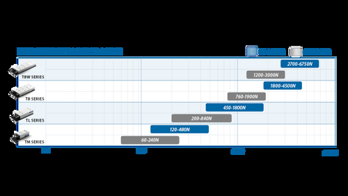 Designed and constructed with an iron core, these linear motors offer extremely high continuous force for their size, starting at 60N for the small TM, all the way up to 3000N for the water cooled TBW powerhouse. Peak forces are even higher, reaching up to 6000N.